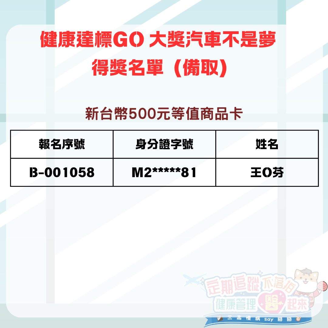 ⬤中獎人(備取亦同)須於通知日起10個日內提供領獎相關資料(含記錄小卡、身分證件、檢驗檢查報告、簽名領據)。
